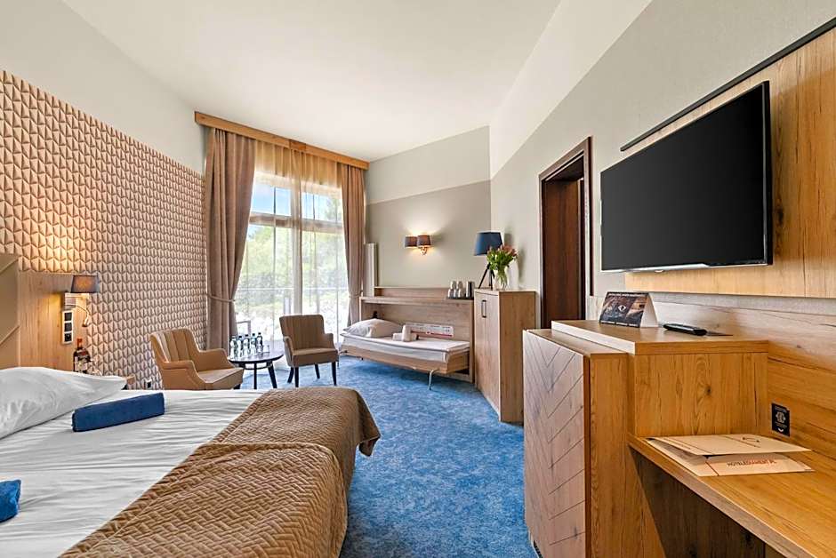 Consisting of one room, it features a desk, seating area and a bathroom with shower. There is also a balcony. Some rooms provide access to a garden.
